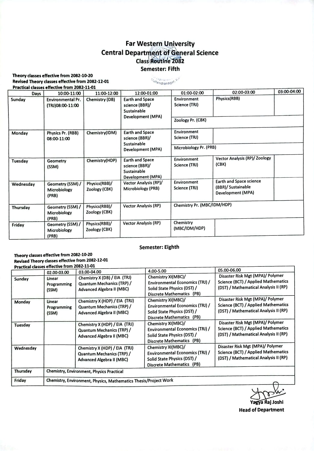 Revised Class Routine of 5th & 8th Semester